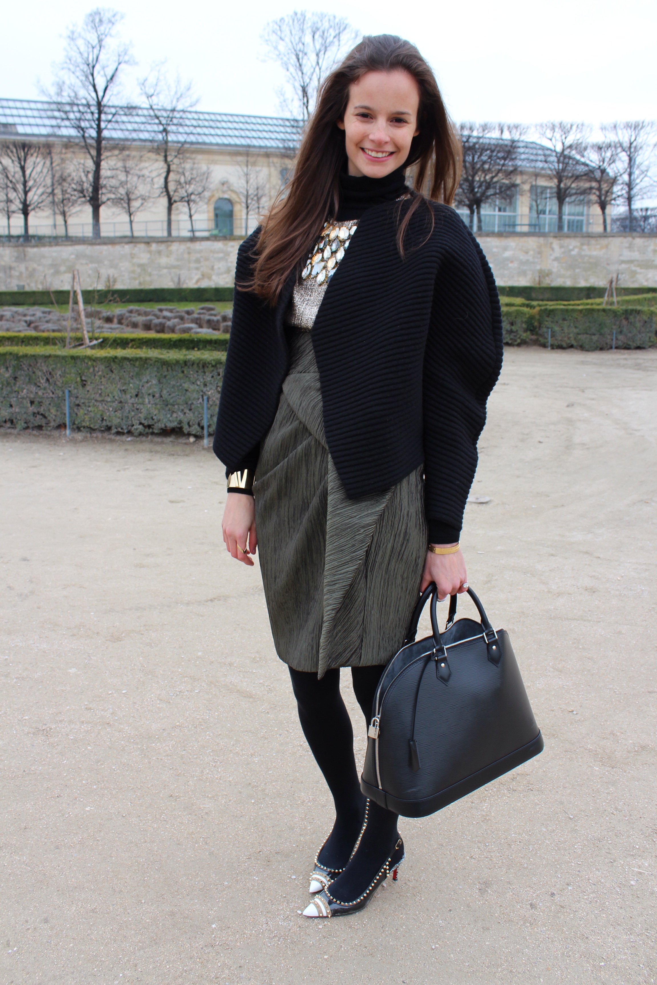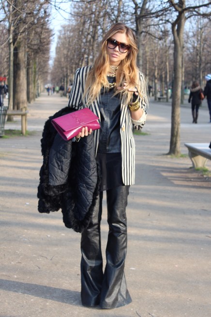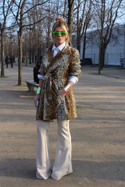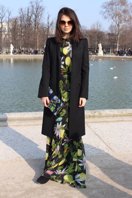 Lenka is a buyer from Georgia, who was in Paris looking for exciting new designers to show in her boutique Pierot Le Fou. Her tropical print maxi dress brought a bit of warmth to otherwise bone-chilling Tuileries.